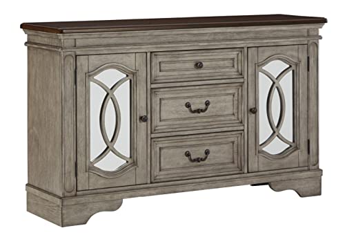 Signature Design by Ashley Londenbay Classic Farmhouse Dining Server with 3 Drawers and 2 Cabinet Doors, Brown & Gray