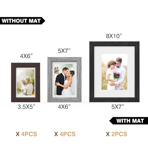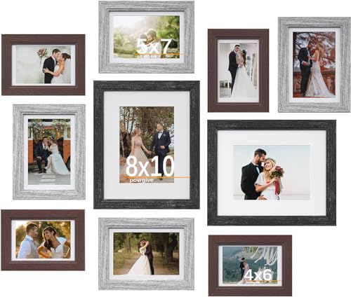 Versatile Collage Frame Set: This set includes 10 frames in 3 colors (black, gray, and brown) and more than a few sizes (8×10 inches, 5×7 inches, and 4×6 inches), allowing you to create distinctive photo displays and collages.
