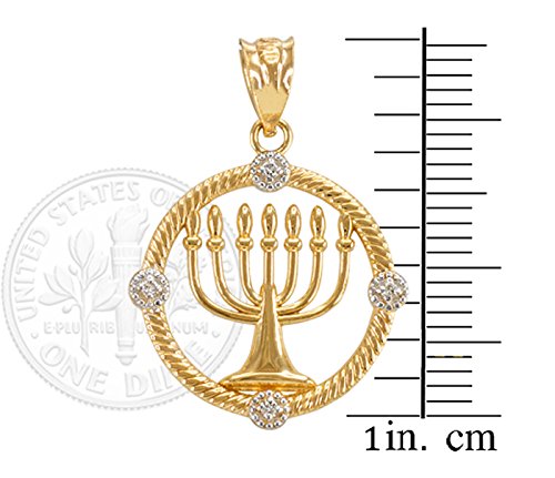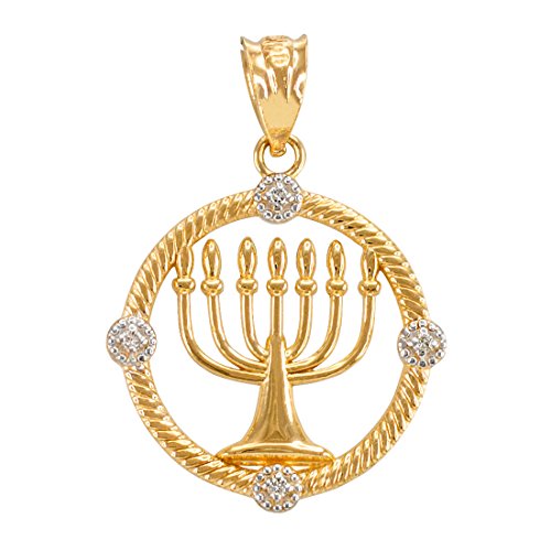 Yellow Gold Jewish Menorah Diamond Pendant.