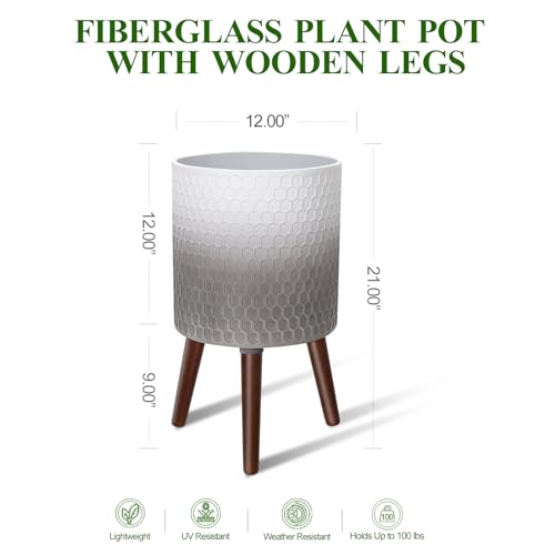 【Classic 3D Honeycomb Texture】The planter pot’s surface boasts a timeless 3D honeycomb texture in shades of gray and white, accentuated by sleek dark wooden legs. Brand new and stylish, this planter seamlessly fits into any decor style, whether Brand new, bohemian, or vintage.