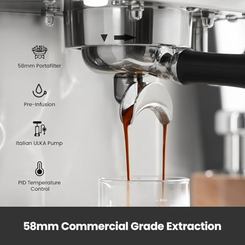 Commercail Extraction System for Home Uesd: This Home Espresso Machine features a 58mm commercial brewing system with an extended 2-meter heating pipe, a 15 bar Italian ULKA pump, and enhanced 1450W power, optimizing extraction efficiency for superior results. This home espresso machine lets you create espressos, lattes, and cappuccinos that rival those from your favorite coffee shop