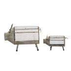 Add a touch of humor to rustic and farmhouse-inspired flowerbeds, gardens, backyards, and lawns with this iron-made pig planter set. The pieces were molded with a fun loaf shape and cartoony faces to catch eyes and complement indoor and outside garden themes. Each and every piece on this garden statue set balances on four legs. Use together or one after the other. Distressed metal look matches with rustic and vintage garden themes. Designed with black rubber stoppers on the base that save you scratching furniture and table tops, in addition to sliding around. Wipe clean with a dry cloth. Planter set open and close on the most sensible. Suitable for indoor and outside use No drainage holes. This set comes with 2 planters. Farmhouse-themed style. This item comes shipped in one carton.