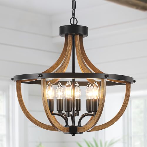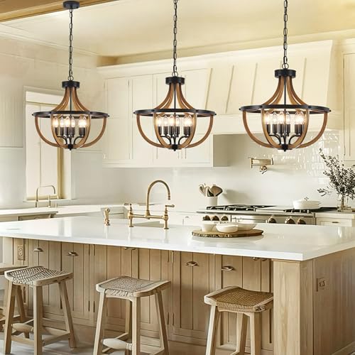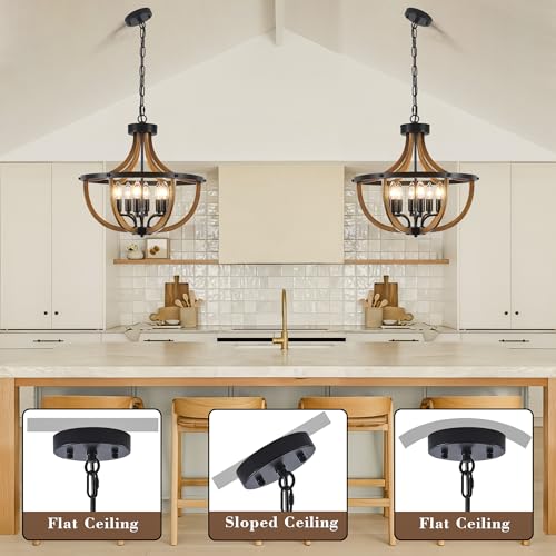 【High -quality Pendant Light】-The thick iron shelf makes the whole light fixture look sturdy. The matte texture and the faux wood grain finish to make your light more ornamental. Compatible with E12 base bulbs, such as incandescent, LED, CFL, and halogen bulbs(Bulb not included, Maximum wattage is 40W).