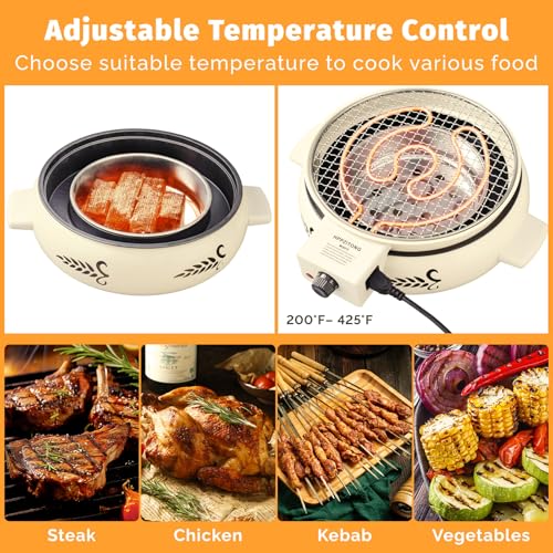 【Versatile & Portable】The 2 IN 1 Smokeless Indoor Electric BBQ Grill/Portable Charcoal Grill allowing you to enjoy the smoky flavor of charcoal grilling indoors or outdoors. Enjoy a hassle-free BBQ experience with the included grill pan and grill net, ideal for Bonfire, Patio, Backyard Picnic.