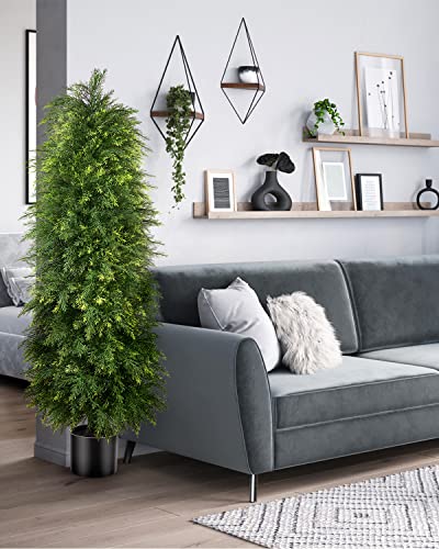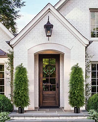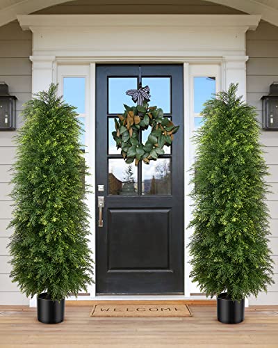 • 2 Pack 5ft Artificial Cedar Topiary Trees Outdoor Artificial Plants for Front Porch Decor Artificial Shrubs Fake Plants Uv Rated Potted Plants for Outdoor Indoor Front Door Office