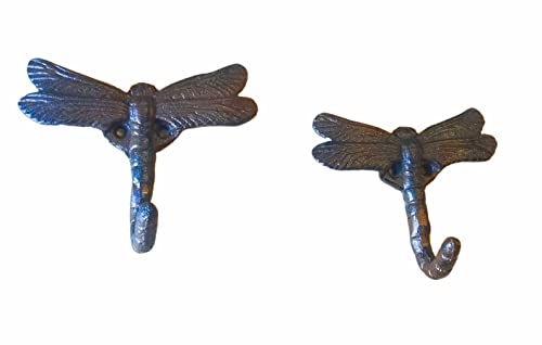 2 laptop Forged Iron Dragonfly Wall Hooks with Hardware Rustic Brown