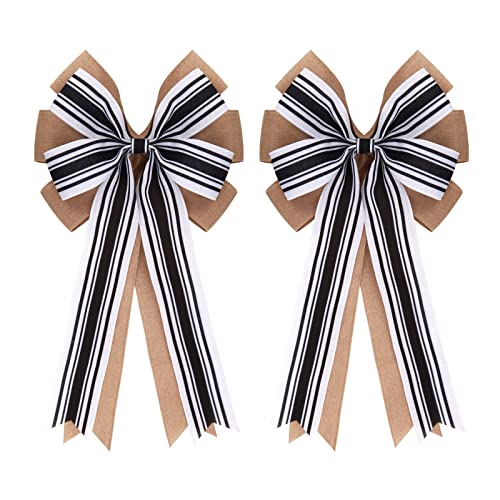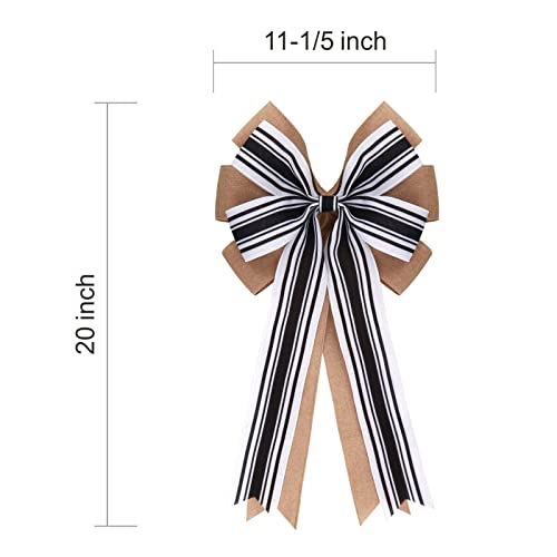 Package: 2 piece of large brualp and black and white stripes ribbon bow, the double bow is measured approx. 20 x 10inches/ 50 x 25 cm which can be convenient so that you can use in more than a few places for decoration