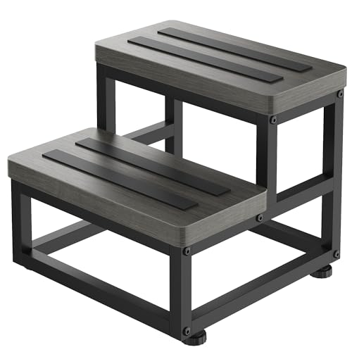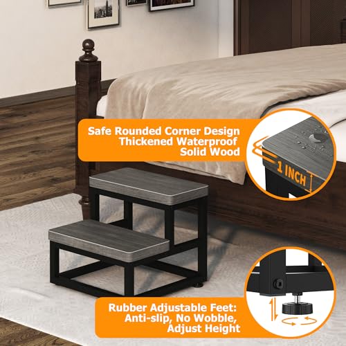 【Heavy Duty & Sturdy Construction】Wooden step stool is constructed by 1 INCH solid wood, which is waterproof, easy to clean, scratch-resistant, eco-friendly. Bed stepping stool with heavy-duty powder-coated, high-strength steel tubing is extremely strong, rust-resistant, can withstand up to 500 pounds, and will ensure years of trouble-free use