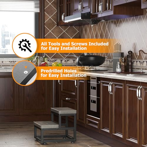【Size & Load-bearing capacity & Pre-drilled Holes for Easy Installation】Size: 15.4”(L) x 15.7”(W) x 11.8”(H) / 39 x 40 x 30 CM. Load-bearing Capacity: 500 LBS. Large step stools come with pre-drilled holes, numbered accessories, easy to remember instructions and installation videos ensure you’ll be able to be set up in 7 minutes