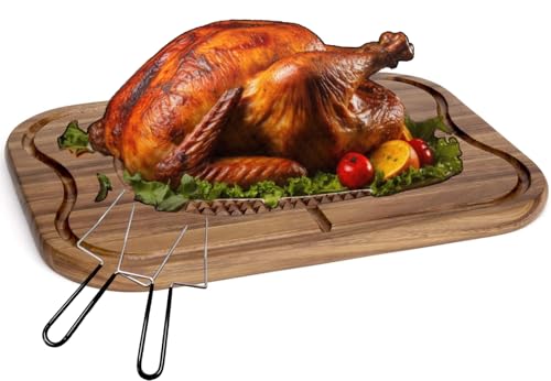 THANKSGIVING TURKEY CARVING BOARD SET:This cutting board with a 20″ length spik carving board and 2pcs stainless steel turkey lifter forks,ideal for lift up and transfer the turkey to place on this cutting board for carving