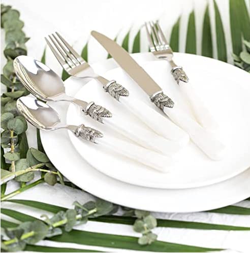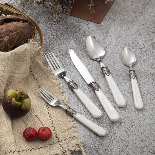 CATHYLIN 20 pieces Stainless Steel Vintage Flatware Sets With White Hanld,Silverware Set For 4,Dishware Safe