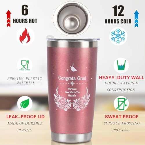 INSPIRATIONAL QUOTES:This graduation tumbler is the very best gift for graduates! It boldly displays the motivational quote “The tassel used to be worth the hassle” to remind graduate of their hard work and encourage them to strive for success. The recipient of this 2025 graduation gift will be inspired to keep pushing forward toward their goals.
