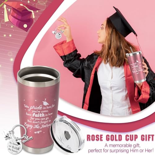 GRADUATION GIFT SET:You are going to receive a graduation gift set for her, including a 20 oz rose gold graduation tumbler with lid, straw, brush, keychain and a special greeting card. Perfect for 2025 graduates, college graduates, high school graduates, friends, sisters, daughters, and classmates.