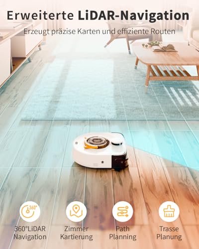 Its suction power is 6-10 times stronger than that of unusual robot vacuums. This powerful suction easily tackles quite a lot of cleaning challenges, making our lives more relaxed and comfortable