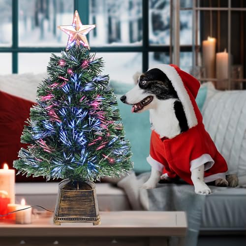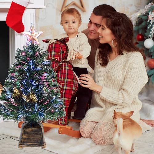 Pre-Lit Fiber ptic/ LighTed Top Star: this prelit tabletop Christmas tree has multi-colored fiber optic and top star,The cozy fiber optic lights are color-changing, with different hues from green to violet to a mixture of colors. The star on the top lights up as well,The fiber optics provide a warm, Christmas feeling! Very festive and the lights do not get overheated