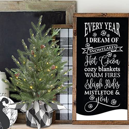 Vofuly is a design-oriented brand.Our design team center of attention on innovating our artifical tree special for Customers who have the pursuit of quality of life .This table top tree features unique design of buffalo plaid base with frosted branches, decorated with pine cones, which make the whole tree look very simple ,special and realistic to bring a strong winter Christmas atmosphere.This UNIQUE and CHIC tree is only for your ,and will make your neighbors and your friends full of praise for your home!