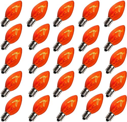 25 pack C7 Clear Outside Orange Bulbs.5 Watt for Each and every bulb, 120 volts Power