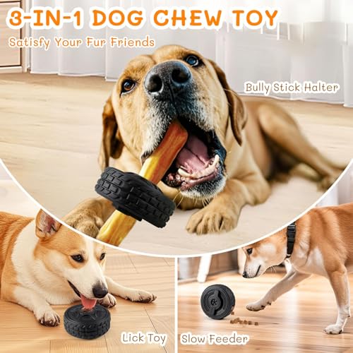 Versatile Bully Stick Holder: Our tire-shaped holder has a 2.3cm/0.9in center hole that’s perfect for bully sticks below 1.8cm/0.7in. The unique design gives your puppy an easier and fun way to chew, like rolling toy that keeps them entertained