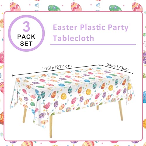 EASTTER TABLECLOTHS PACK: You are going to receive 3 Easter tablecloths, each measuring 54 x 108 inches, providing a lot of coverage for replacement and use. They are designed to fit most standard tables in the marketplace