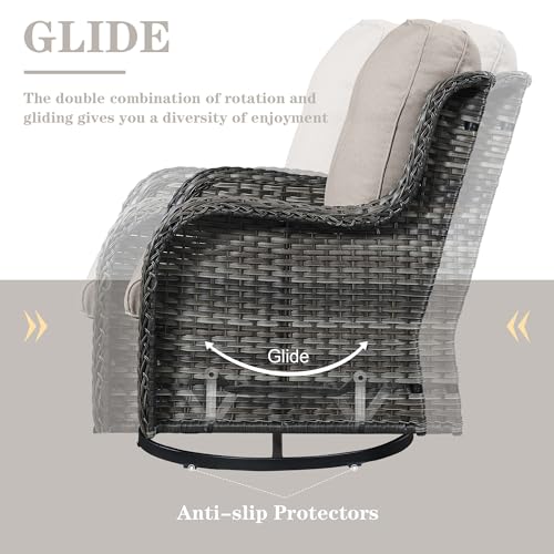 • 3 PCS Patio Furniture Set Mixed Grey Wicker Swivel Rocking Chairs with Side Table Furniture Set for Outdoor