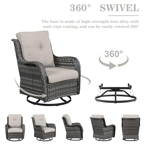 3 PCS Patio Furniture Set – Mixed Grey Wicker Swivel Rocking Chairs with Side Table, Furniture Set for Outdoor