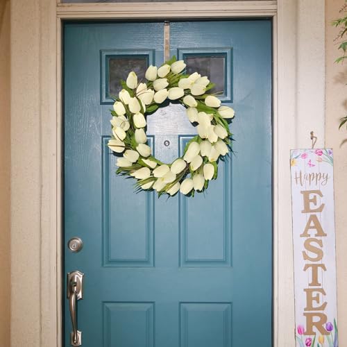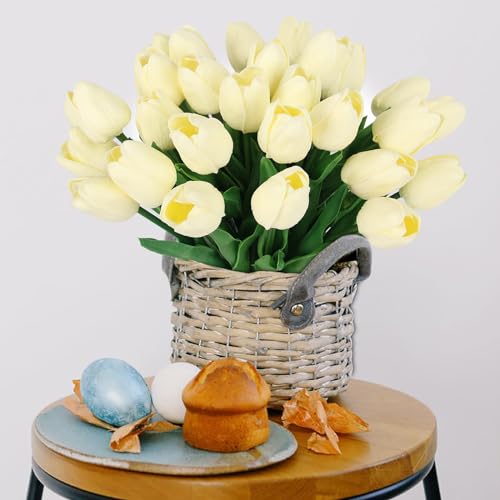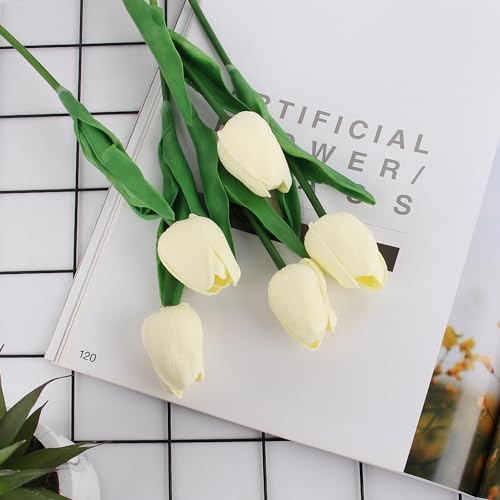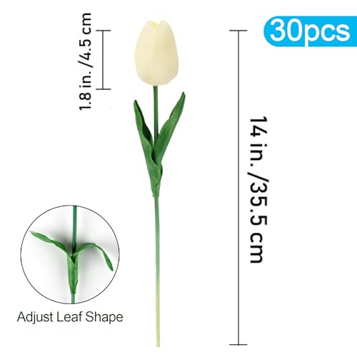 • 30 pcs Artificial Tulips Flowers Fake Latex Tulip Stems Real Touch Faux Cream White Tulips Flower for Easter Spring Wedding Bouquet Centerpiece Floral Arrangement Wedding Cemetery Table Decor