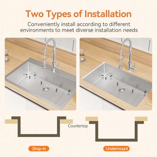 𝗦𝗽𝗮𝗰𝗶𝗼𝘂𝘀 𝗦𝗶𝗻𝗴𝗹𝗲 𝗕𝗼𝘄𝗹 𝗗𝗲𝘀𝗶𝗴𝗻: With a large single bowl (33″ L x 22″ W x 9″ D), TECASA 33×22 under-mount/drop in kitchen sink provides various space for washing large pots, pans, and dishes, making kitchen tasks more efficient
