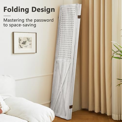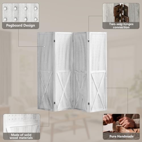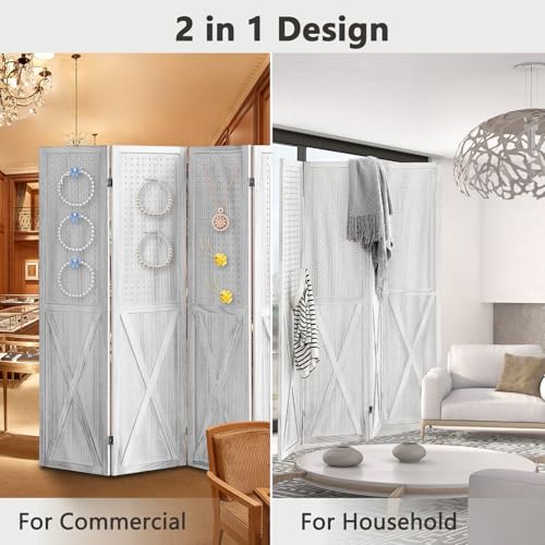 【Versatile Display Pegboard】The 4 panel pegboard display features a unique design, the top half is designed with evenly spaced pegboard holes and the bottom half features a privacy divider, combination of two functions. This pegboard room divider not only can be utilized as a room divider folding privacy screen for home decor or wall organizer, but could be a freestanding display panel, perfect for stores, boutiques, trade show booths and retail shelving.