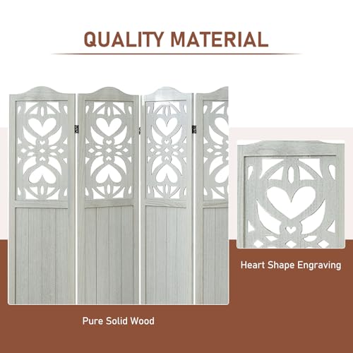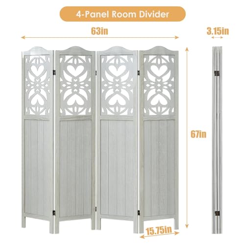 • 4 Panel Room Divider Fully Assembled Carved Room Dividers and Folding Screens 56Ft Wood Room Divider Screen Freestanding Partition Wall Dividers for Home Bedroom Office Rustic White