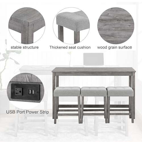 Up to date Industrial Style: This bar table set exudes a recent industrial aesthetic with its top quality imitation wood grain surface and sturdy metal frame, making it a stylish addition on your kitchen, gaming room, or living room.