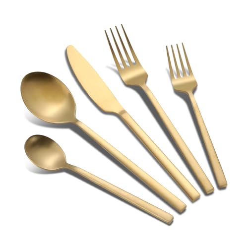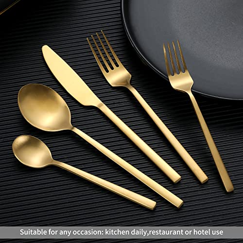 【ELEGANT DESIGN & ERGONOMIC HANDLE】: Classic square maintain shape with satin finish, natural and elegant design.Smooth and silk surface without grain, easy to clean and care in daily use. Crafted forged process, strong and durable,in order that the flatware set has a thicker texture.