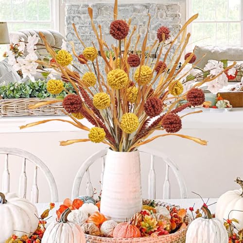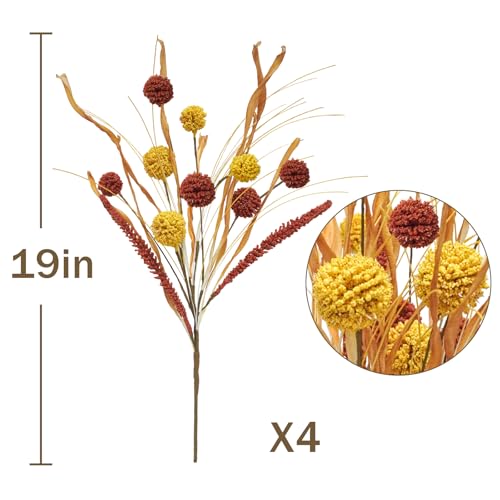 Package and Sizes: Includes 4pcs of 19 inch fake fall stems, Each and every adorned with faux fall grass and fall bill ball flowers