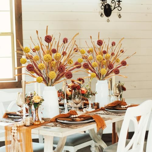 • 4Pcs Fake Fall Floral Stems 19 inch Artificial Autumn Bill Balls Flower Pick Fall Craspedia Stems Bouquet for Vases Home Office Wedding Harvest Thanksgiving