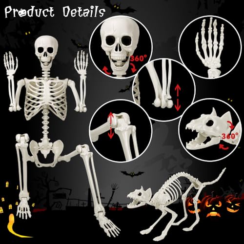 Value Packs: This Halloween Skeleton Pack includes a 5.4 ft/165 cm life-size human full-body skeleton and a cat skeleton with realistic bones, which is so lifelike that it is sure to be the easiest prop for your Halloween decorations.