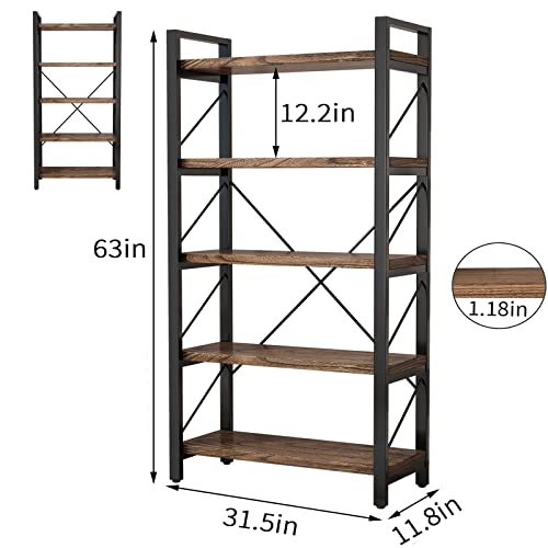 SOLID THICK WOOD: Natural solid wood shelves(1.18” thick panel), solid wood shelving ensure durability in storage and decoration.5-tier book shelfs combine strong, sturdy and beautiful in its grain with vintage and industrial-style that would not can help you down for a long run!