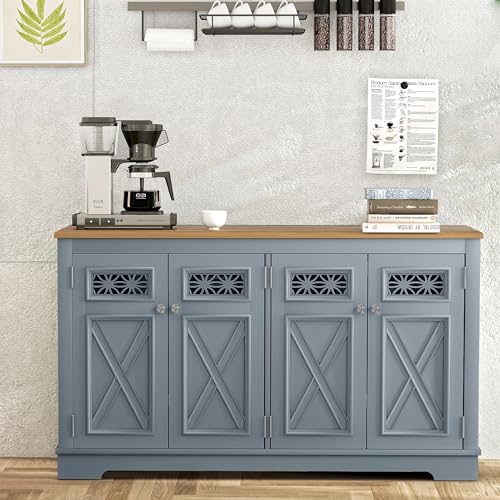 Enhance your house with this farmhouse-inspired 57.4″ sideboard buffet cabinet, blending elegance and functionality for any room. Featuring four patterned glass doors, adjustable shelves, and a unique two-tone design, this flexible storage piece effortlessly combines brand new aesthetics with ample storage options. Easiest for organizing dining essentials, decor, or other household items.Features:Farmhouse Style: 57.5″ sideboard with a charming two-tone finish, blending farmhouse warmth with brand new appeal to fit any decor style.Patterned Glass Doors: Four doors with intricate glass designs add sophistication and easy get admission to to stored items.Adjustable Shelves: Customize interior storage for dinnerware, decor, and essentials with flexible shelf heights.Oxidized Nickel-Plated Knobs: Top of the range knobs with oxidized finish offer lasting shine and durability.Quick Assembly: Easy setup with a quick assembly design, so you’ll be able to start enjoying it in minutes.Strong Weight Give a boost to: Tabletop supports 150 lbs; shelves hold 30-50 lbs for reliable, versatile storage.Specifications:Assembly Required: Yes, easy to collect with detailed instruction and all hardware included.Product Color: Haze BlueMaterial: Top of the range MDF with durable metal hardwareWeight Capacity: 150 lbsShelf Weight Capacity: 30 lbsProduct Dimensions: 57.5″ W x 15.5″ D x 34″ H