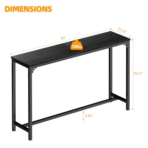 【Circle of relatives Bar Atmosphere】: Bar Table Size: 63 x 15.74 x 39.37 inches. This narrow bar table, with a depth of 15.74 inches, is ideal for cozy dining areas; Whilst conserving space, it offers ample room for tableware and food placement, creating a welcoming ambiance for Circle of relatives gatherings; Indulge in a glass of rich wine or a cup of aromatic coffee, and savor moments of exclusive relaxation at home