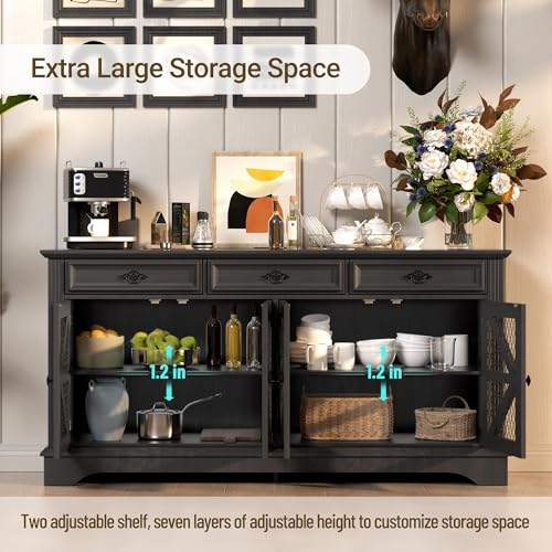 MULTI-FUNCTIONAL BUFFET CABINET: It may possibly serve as a wine cabinet, coffee bar, home bar, buffet, kitchen pantry, and more. With spacious storage compartments, drawers, and shelves, it helps organize wine, coffee machines, tableware, and other kitchen essentials, keeping the whole lot neatly stored and easily accessible