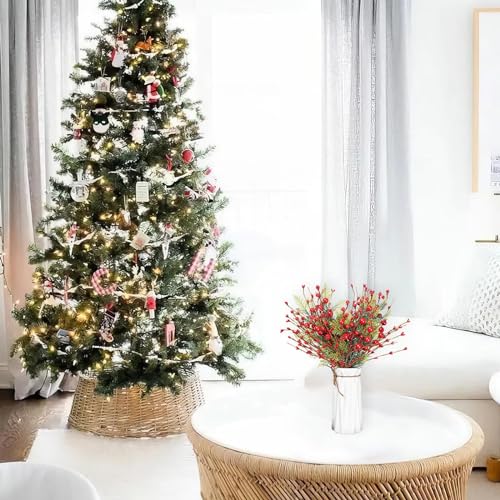 Vivid Red Berries: These artificial red berry stems are bursting with vibrant red berries that in an instant catch the eye. The rich hue of the berries adds a pop of color to your holiday decorations, making them perfect for Christmas Tree Decor.