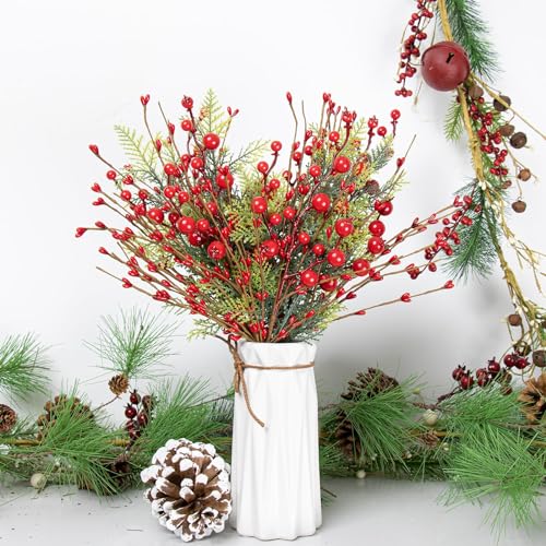 Realistic Design: Crafted with meticulous attention to detail, these 17-inch Christmas red berry picks closely mimic the appearance of real holly berries. The lifelike texture and glossy finish lead them to appear to be they were just plucked from a winter garden.