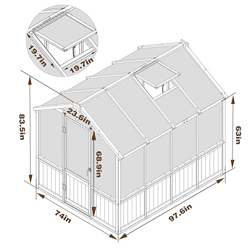 Heavy Duty and Strudy Frame: The frame is stury to stand more than a few weather conditions, it may be used not only on sunny days, but also on rainy and snowy days. Meanwhile, our wooden greenhouse also has a sturdy base improve and reinforced construction