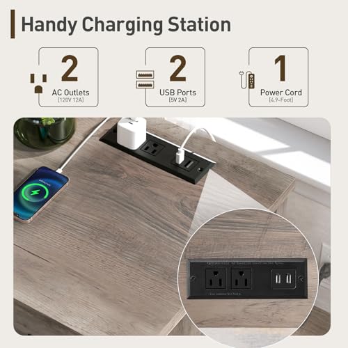 Convenient Charging Station: With a built-in power strip offering 2 AC outlets, 2 USB ports, and a 4.9-foot cord, the drawer dresser easily charges your smartphone, headphones, desk lamp, and more. No extra outlets needed for ultimate convenience