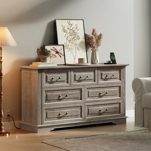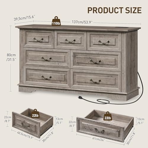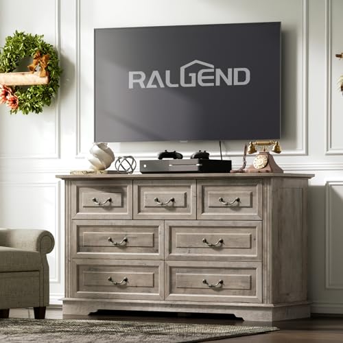 Organized Storage: At 53.9” L x 15.6” W x 31.5” H, the drawer chest has 7 roomy drawers on smooth slides. It is ideal for keeping your shirts, dresses, leggings, and other clothes tidy and within reach. Plus, the wide top is a brilliant for TVs or art pieces, and more