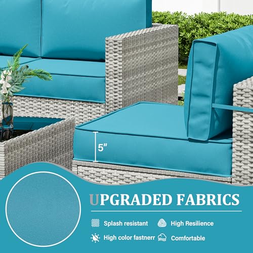 🍓Patio Furniture Set – Kimunuk 7 Piece Patio Furniture Set includes 4 center sofas, 2 corner sofas, and a tempered glass table. All necessary tools and detailed instructions are included in the box, so You’ll be able to easily put them together according to the clear instructions, the use of the complete set of necessary tools and hardware.