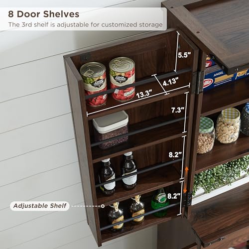 Discover Versatile Storage Solutions: Unleash the potential for your space with our storage cabinent, generously sized at 30″W × 16″D × 72″H. Tailor your storage needs with 6 shelves (4 adjustable), 8 door shelves (2 adjustable), and a smooth-gliding middle drawer. Beyond organizing your kitchen essentials, this cabinet effortlessly transitions to accommodate bathroom necessities and beef up living room aesthetics. Elevate every corner of your home with impeccable organization.