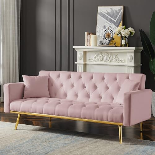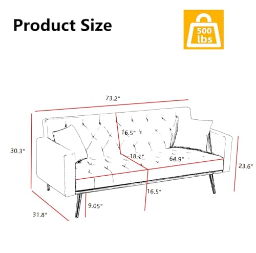 HIGH QUALITY: Featuring soft velvet fabric and 4 metal legs, this convertible futon sofa combines comfort and style for years of durable use in your living space.