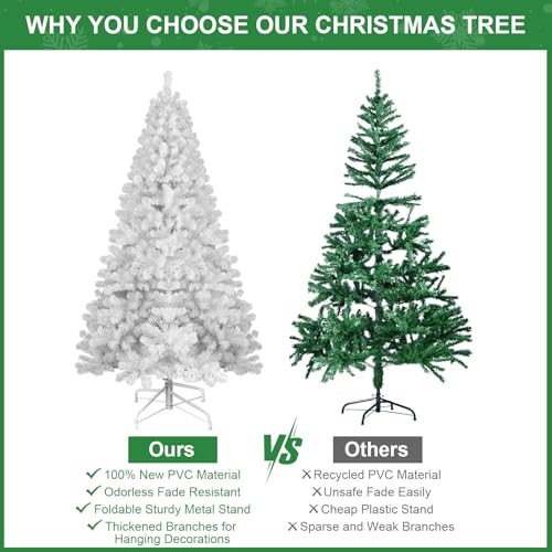 ๐๐๐ซ๐๐ฆ๐ข๐ฎ๐ฆ ๐๐ก๐ซ๐ข๐ฌ๐ญ๐ฆ๐๐ฌ ๐๐ซ๐๐: Crafted from durable PVC, this 7ft white artificial Christmas tree is non-flammable, fade-resistant, crack-resistant, odorless, and non-allergic, ensuring it closely resembles a real full Christmas tree. Featuring 1064 sturdy branches, it offers abundant space for your favorite decorations and lights, allowing you to create a personalized festive display