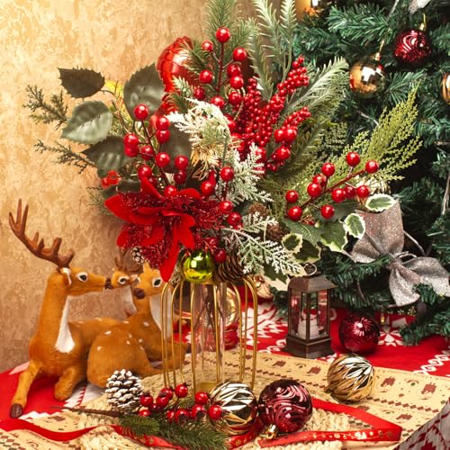 Vibrant Assortment: Each and every pack includes assorted red berry picks stems, faux pine picks spray, and delightful accents like pinecones, apples, and holly leaves, ensuring a stunning variety for your creative projects.