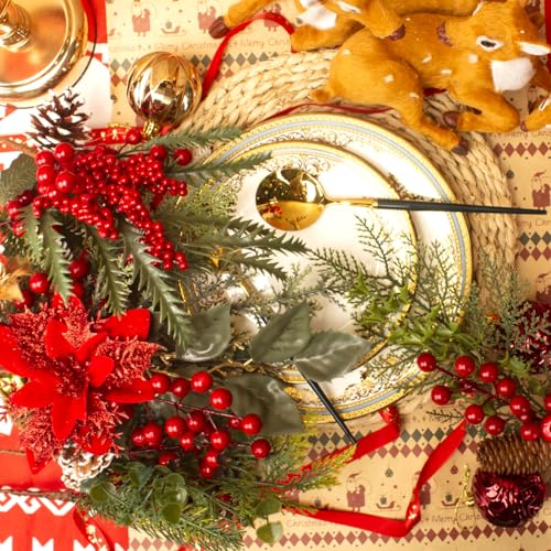Bring the festive spirit of Christmas into your own home with this set of 6 artificial pine branches adorned with vibrant red berries. Each and every 9.8-inch stem features lifelike greenery, pinecones, and holly sprigs, creating a charming and natural look. These versatile floral picks are ideal for crafting DIY holiday wreaths, garlands, centerpieces, or gift wrapping. Enjoy the warmth and great thing about these Christmas picks year after year without worrying about wilting or maintenance. Simply arrange them to your desired style and let the seasonal cheer fill your living space.