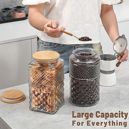 Organize with Elegance——A stylish storage glass canisters with airtight lids for your pantry! With its classic embossed design, Cookie jar adds sophistication to your kitchen even as freeing up space. Keep everything organized and tidy with this fashionable canister. Perfect for any home decor, Large glass jars with lids is the ultimate way to declutter your kitchen.